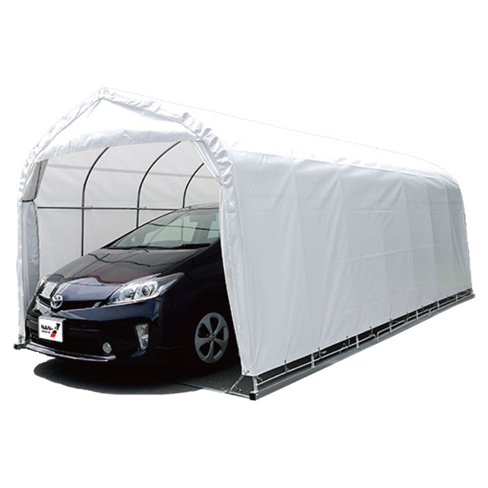軽トラックから乗用車/ワゴン車まで、充実したサイズがそろった南榮オリジナルのパイプ車庫です。風や雨から大切な車を守ります。建築許可も不要で、自分で組み立てられ、ベース式は舗装面も設置可能です。長年の南榮品質と実績で国内外から絶大な信頼性をいただいております。